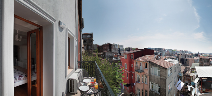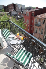 Die premium Wohnung ist 60 quadratmeter gross. Die Wohnung hat ein Wohnzimmer, Schlafzimmer, Küche und Badezimmer und 2 Balkone mit wunderschöne Aussicht, die sie entweder auf der einen Seite im Schatten oder auf der anderen Seite die Sonne genießen können. Die Kirche und die Moschee ist sehr nah gelegen, so dass Sie die Glocken und Gebetsrufe hören können.